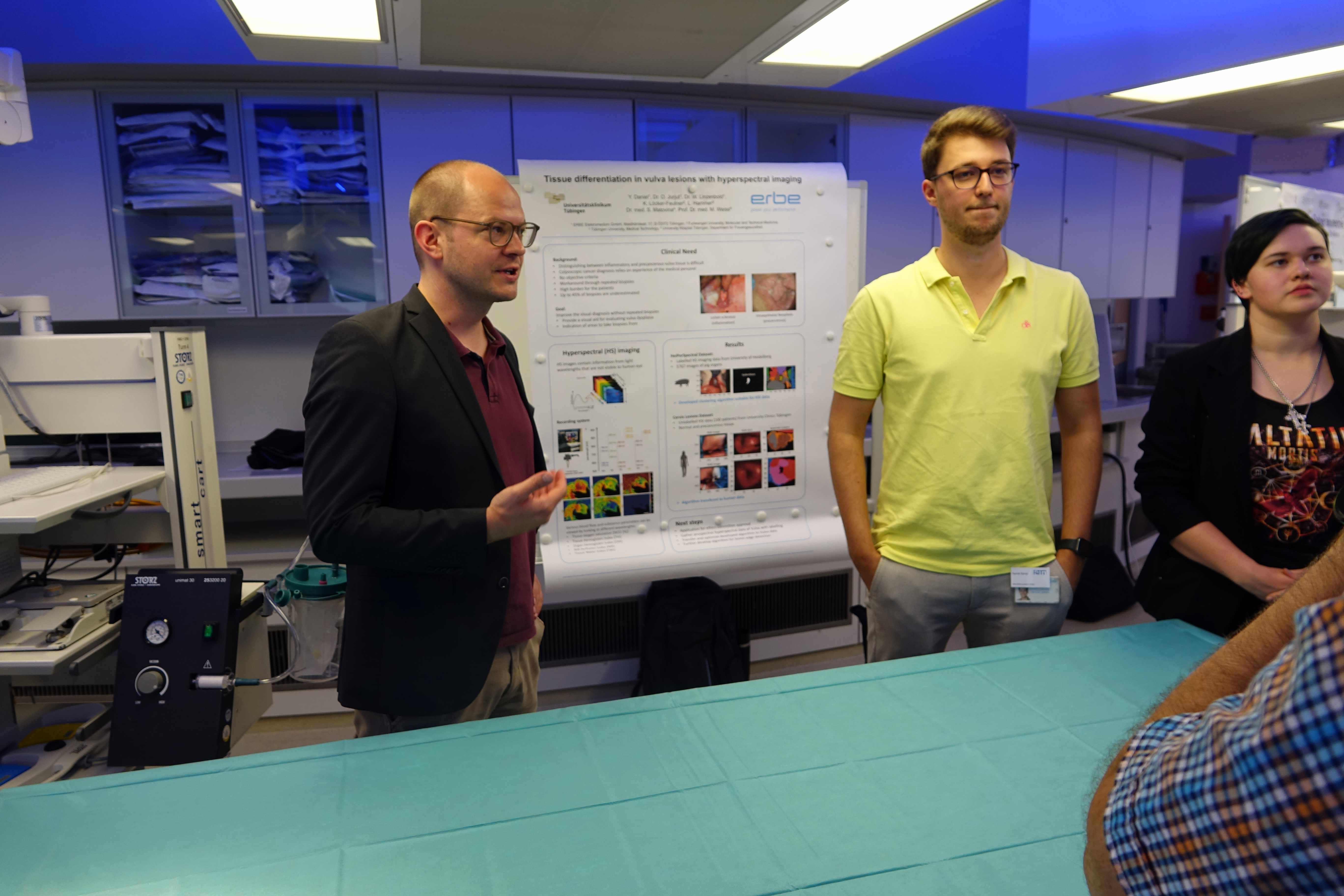 Die Früherkennung von Vulvakarzinomen ist eine besondere Herausforderung, da die Diagnostik viel Erfahrung bedingt. Eine Abgrenzung etwa zu Entzündungen ist häufig nur mit Biopsien zuverlässig möglich, wobei diese jedoch die Patientinnen belasten, zumal sie häufig mehrfach nötig sind. Das Team aus jungen Klinikern der Tübinger Frauenklinik und Entwicklern der Erbe Elektromedizin GmbH will deshalb eine optische, kontakt- und möglichst auch markerfreie Diagnostik entwickeln, die im besten Fall sogar im ambulanten Bereich durchgeführt werden kann. Basis ist die hyperspektrale Bildgebung, mit deren Hilfe Gewebedifferenzierungen möglich sind, die das menschliche Auge nicht leisten kann.