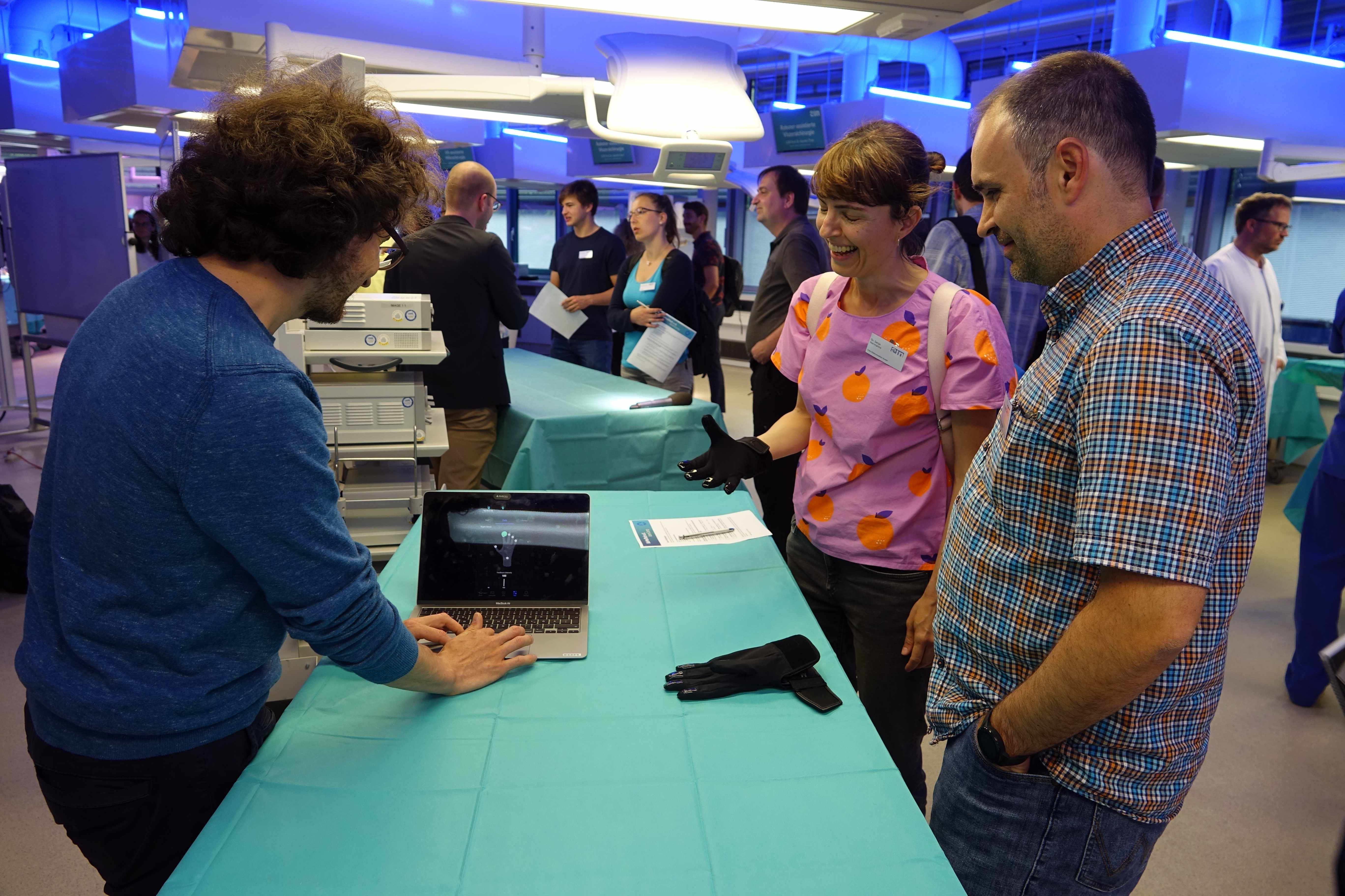 Viszeralchirurgen und Entwickler der Aesculap AG wollen Operateuren bei laparoskopischen und robotischen OPs den Tastsinn zurückgeben. Gerade für junge, noch nicht so erfahrene Chirurgen ist es eine große Herausforderung, ohne haptisches Feedback zu operieren. Deshalb will das Team sie mit haptischen Handschuhen in der Ausbildung zu unterstützen. Das Prinzip sieht vor, physische Eindrücke, zum Beispiel der Krafteinwirkung auf ein Gewebe, mittels Sensoren in elektronische Signale umzuwandeln und diese per Bluetooth in den Handschuh zu übertragen, dessen Fingerkuppen dann je nach Signal unterschiedlich vibrieren und dem Träger somit spürbares Feedback geben.